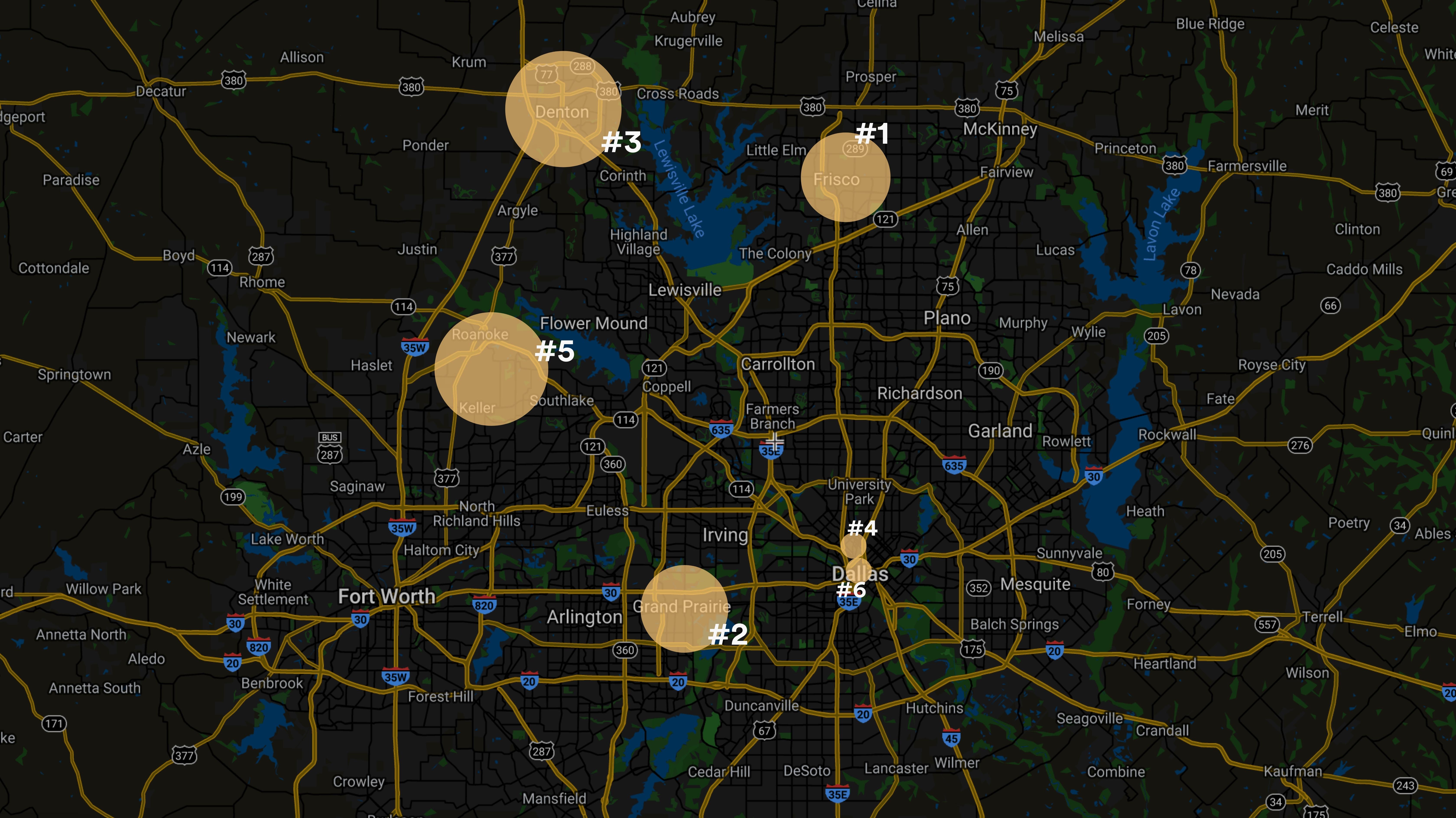 It comes as no surprise that this city is on this list. Back in 2020, Frisco was the fastest-growing city in the nation according to the U.S. Census Bureau.