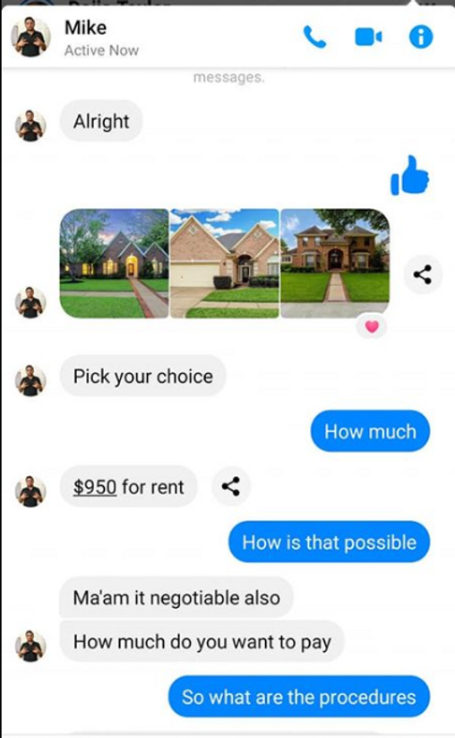 1) Short-term lease rentals. The scammer elects to stay for a few days at private home and has the opportunity to create content, post a new listing, and give live tours. This is terrifying and unfortunately it's happens often. Sites like Airbnb work to crack down on this, but not all short term rental sites have the same concerns around user safety.